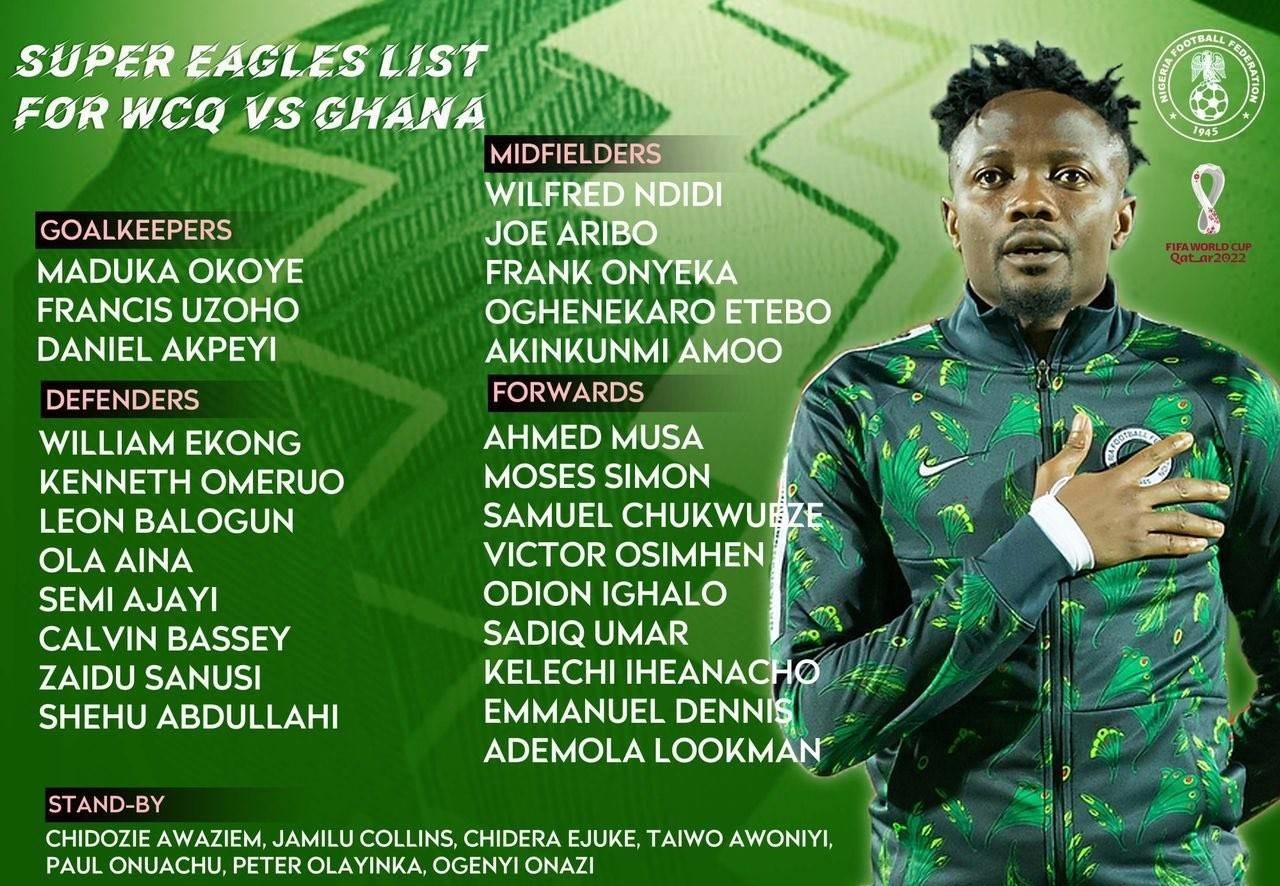 北京时间3月4日,尼日利亚将迎来世界杯非洲预选第三阶段客场对阵加纳的首回合比赛,日前,尼日利亚官方公布了本期国家队的大名单.